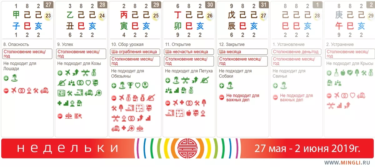 27 мая. Нельзя сказать, что день полон ци. Это начало 60-ти дневного цикла и подходит он для повседневных дел и подготовки к рабочей неделе. Лихачить на дороге тоже не стоит, особенно, если вы родились в год Лошади, Быка или Собаки.