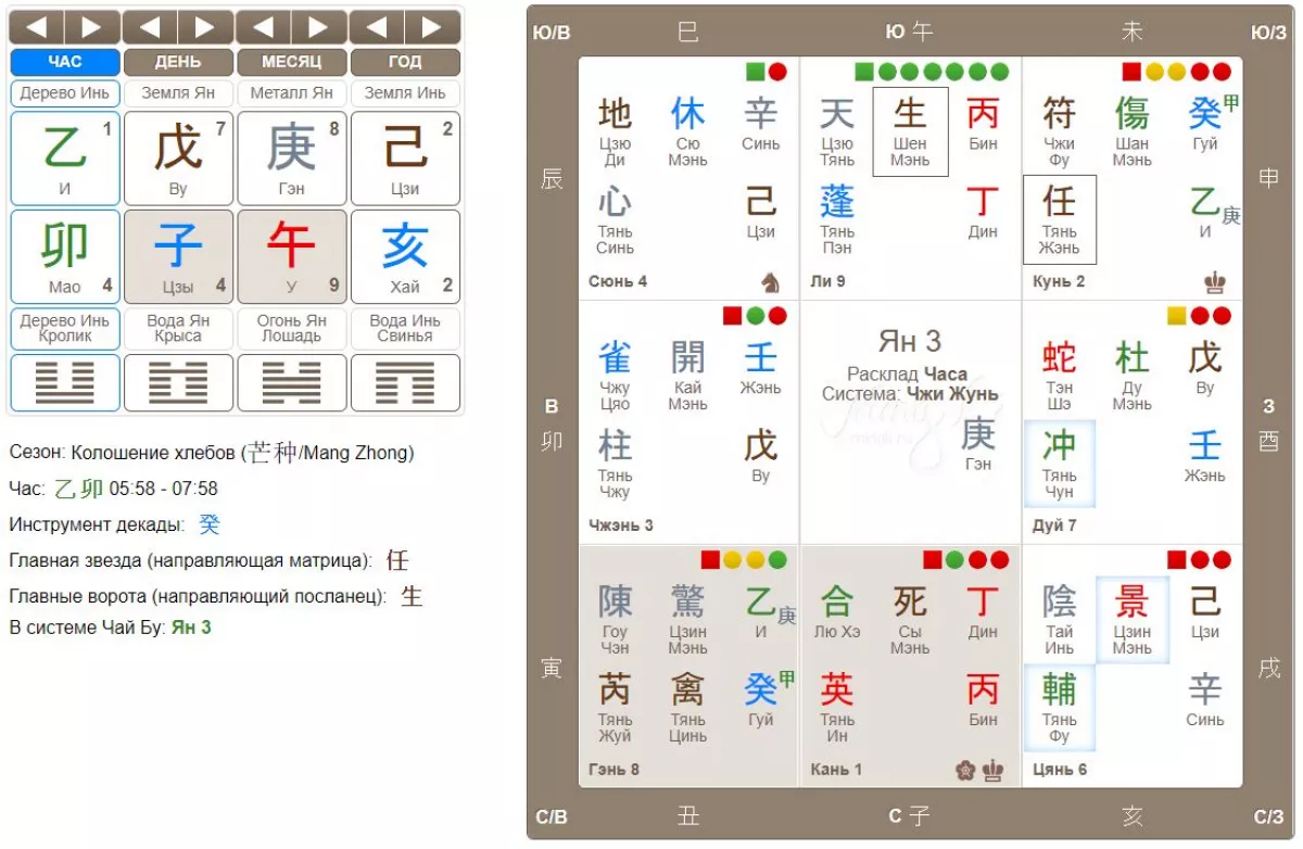 Если вы активизируете благоприятную структуру – нет необходимости смотреть на карту ци мэнь с точки зрения выбора дат: проверять свой год рождения, анализировать отношения день-час. Вы просто едете в сторону хорошей ци и используете ее максимально. И действует эта хорошая энергия, активизированная часом, примерно 5-7 дней, то есть, на короткую поездку ее хватает.