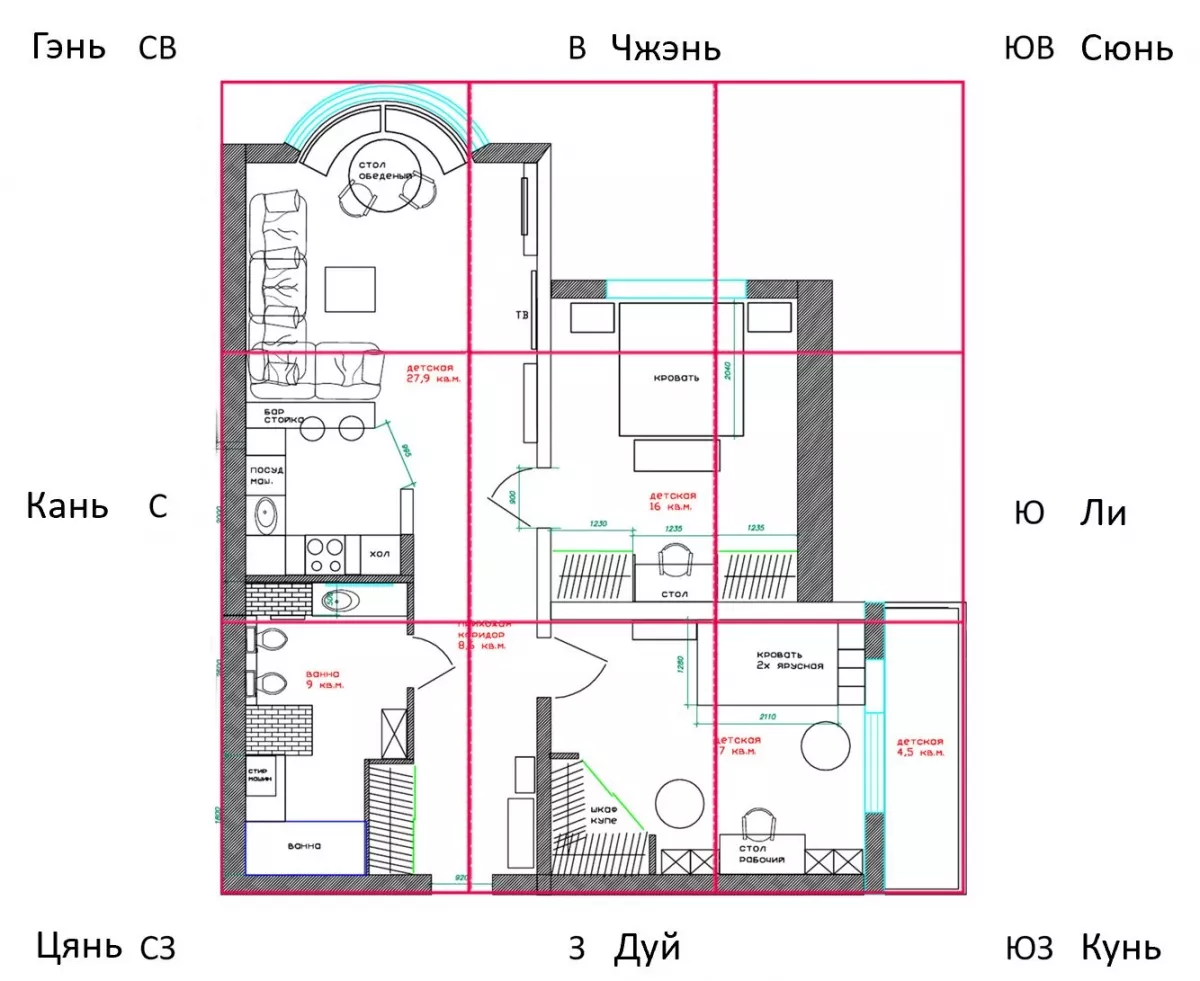 Затем мы изучим то, что получилось и сравним направления сторон света с органами человеческого тела, статусами в семье и гуа, учитывая негативные влияния.  Итак, поехали.