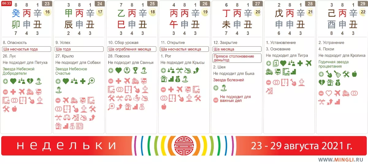 Что у нас с неделькой? Месяц Обезьяны в самом разгаре, Петух начнется только 7 сентября, так что поговорим о нем в следующий раз.