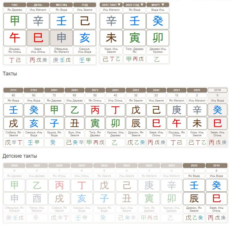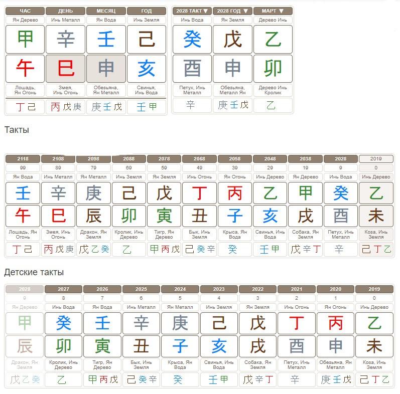 Для анализа детских карт строят специальные детские такты. Если взрослые такты строят от столпа месяца, то детские такты строят от столпа часа. Как и в случае с построением взрослых тактов, учитывают пол и ян-инь года.