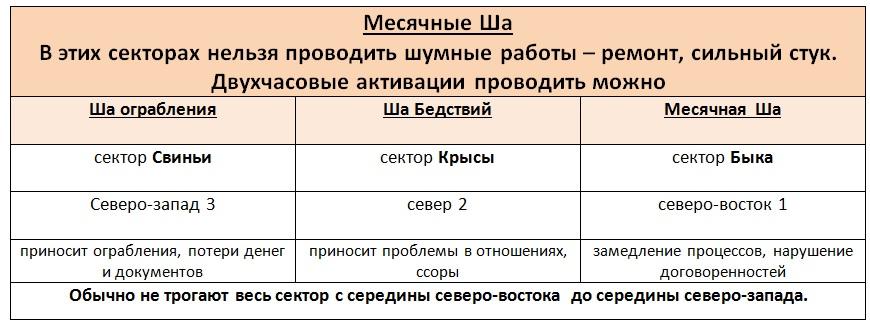 Восток. В восточный сектор прилетит месячная звезда 5. Если это активная часть квартиры – поставьте «соляное средство» или повесьте колокольчик на дверь. Не делать ремонт в этом секторе. Постарайтесь находиться здесь как можно меньше, обязательно займитесь здоровьем, если у вас там спальня. Не начинайте никакие важные проекты, не давайте деньги в долг, не берите большие кредиты, если у вас входная дверь на востоке. В этом месяце у тех, кто использует восток активно могут обостриться хронические заболевания, особенно все что связано с печенью и желчным пузырем, могут быть переломы конечностей.