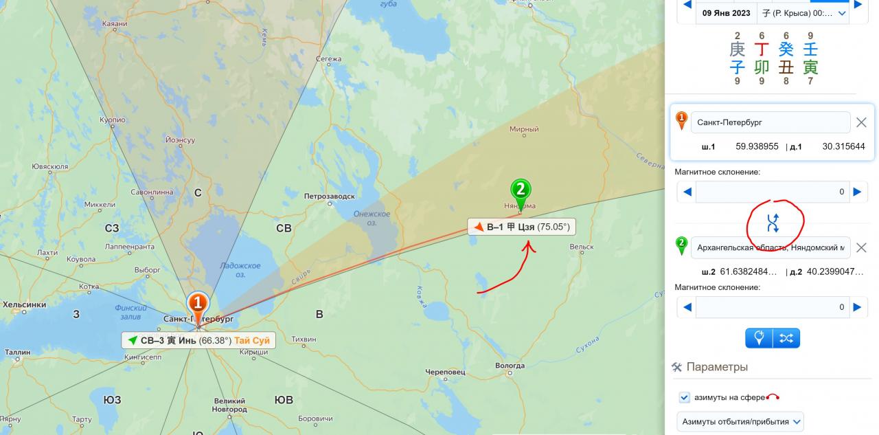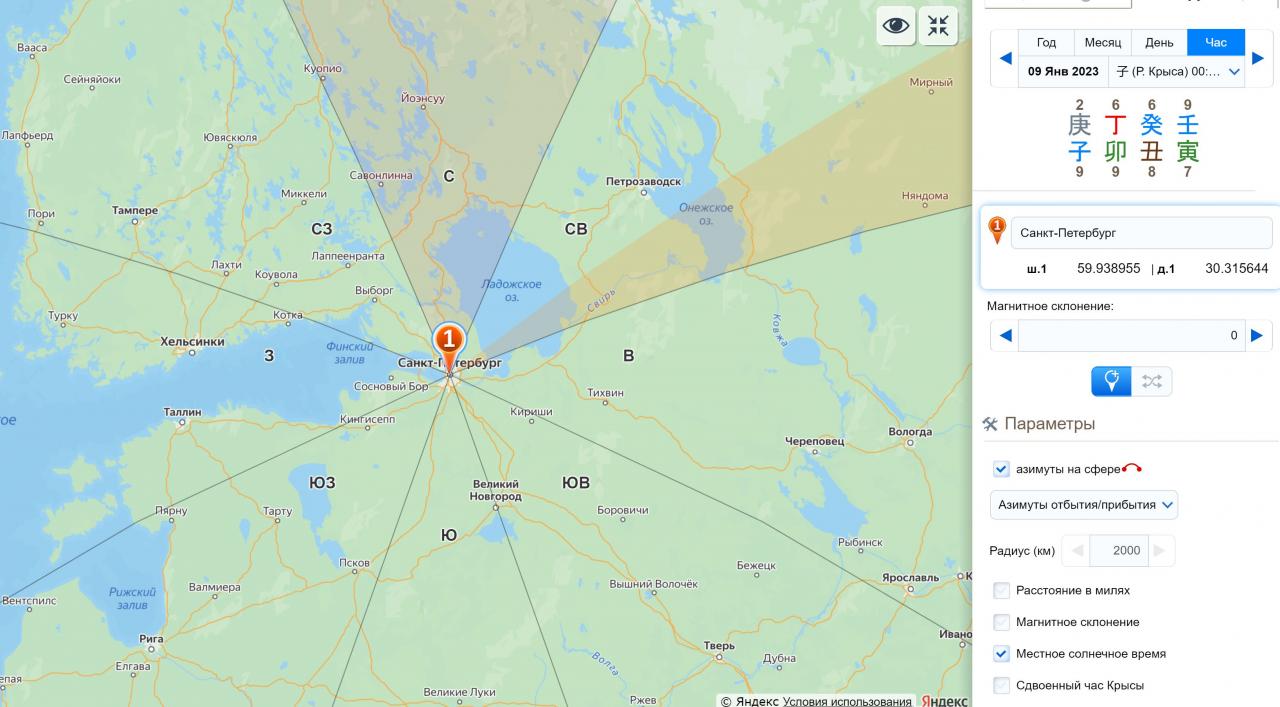 Откройте Навигатор направлений на Минли и найдите свой город или то место, откуда вы планируете ехать. Выберите нужные даты, выключите магнитное склонение и включите азимуты на карте: