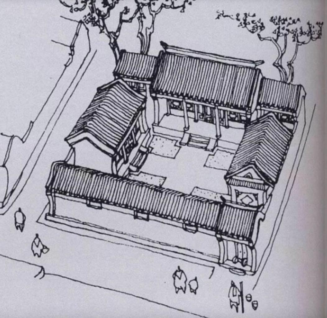 Главный вход ведет в небольшой прямоугольный дворик. За вторыми воротами находится экран 影壁 инби (дословно: стена отражений, или стена теней), который защищает жилище от посторонних взглядов и злых духов.
