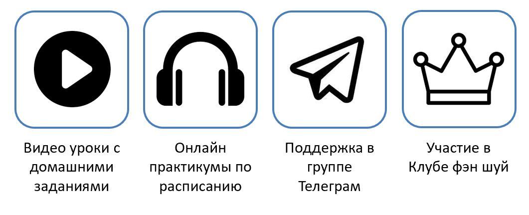 На онлайн программе вы изучаете видео-уроки по теории и участвуете в онлайн практиках, которые проводятся по расписанию. Каждый студент при поддержке своего куратора разбирает по Фэн Шуй «от и до» свой персональный проект – дом или квартиру. Также есть поддержка в закрытой группе Телеграм.