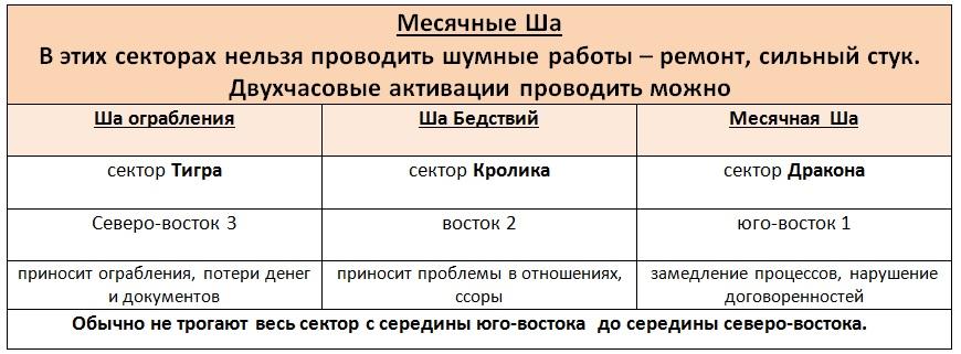 Юг. Суперсектор!!! Старайтесь там чаще находиться, работать, спать, учиться. Очень хорошо использовать его для поиска отношений, парам, желающим завести ребенка. Хороший сектор для начала ремонта и для активаций «Благородного помощника года – Луна». Если вы в апреле не поставили здесь Мобил, то можете сделать это в мае. Запустить его можно 7 мая в час Свиньи, день не подходит для тех, кто родился в год Козы, или 9 мая в час Змеи, день не подходит для тех, кто родился в год Петуха.