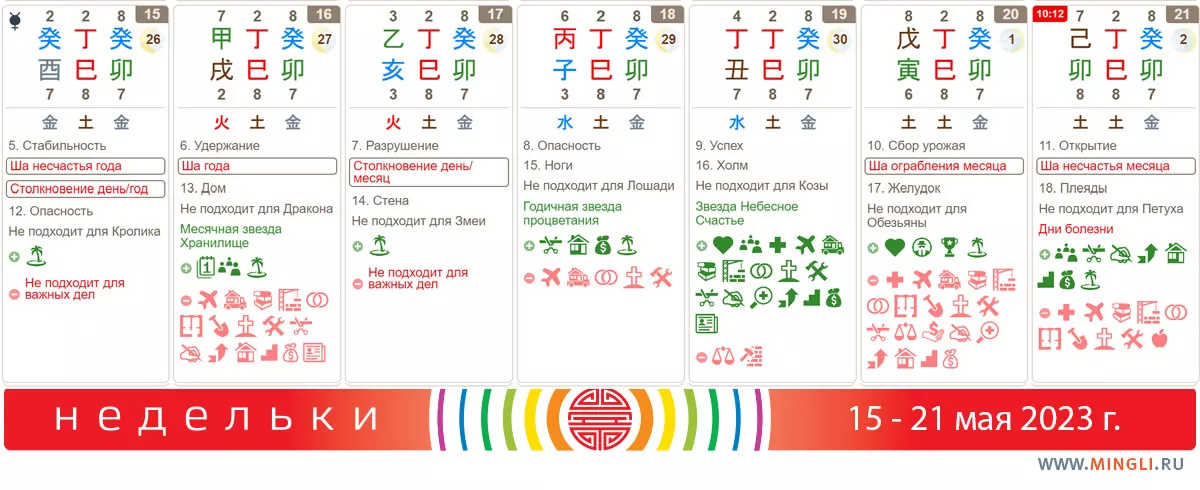 18 мая, четверг. Отличный день. Прекрасно подойдет для строительства, свадьбы, ремонта, земляных работ, путешествий, начинания нового бизнеса и проектов, поездок. (Если вы не Лошадь по году, конечно, и Огонь вам полезен). Приносит хороший урожай, увеличивает благосостояние, благоприятствует потомкам. Значительные действия принесут большую отдачу, скромные действия принесут, соответственно, скромный результат.