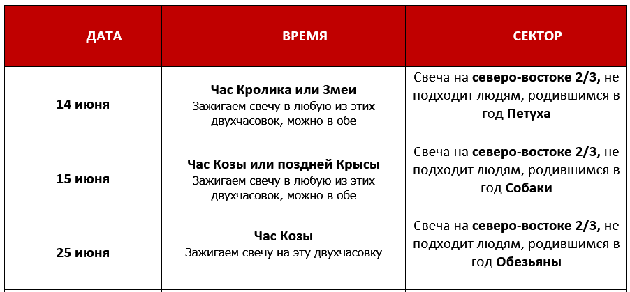 Если вы родились в год или месяц Крысы (декабрь), или в июне, то в этом месяце приходит «личный разрушитель», вам нужно тщательно выбирать важные даты в месяце. Особенно будьте внимательны 5, 11, 17, 23, 29 июня, 5 июля