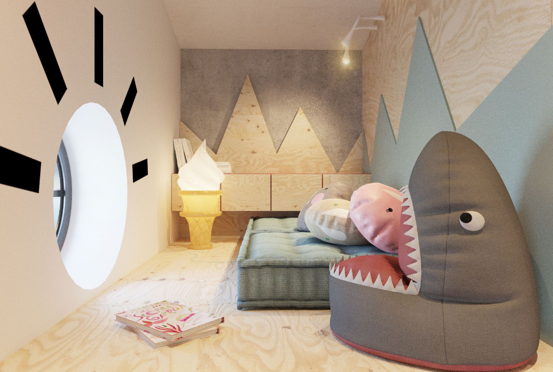 Переделка под названием «Раз дощечка, два дощечка» была придумана и реализована для десткой комнаты, где должны поселиться два мальчика-школьника.