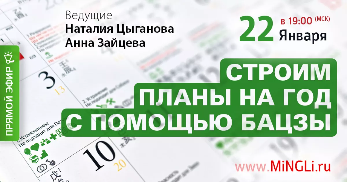 Приглашаем вас 22 Января в 19:00 на открытый вебинар по Бацзы «Строим планы на год с помощью Бацзы»