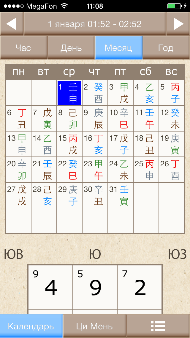 Что касается периода гексаграммы часа или дня в ци мэнь (в календаре число под ЗВ), то его и не планировалось отображать, здесь достаточно элемента гексаграммы