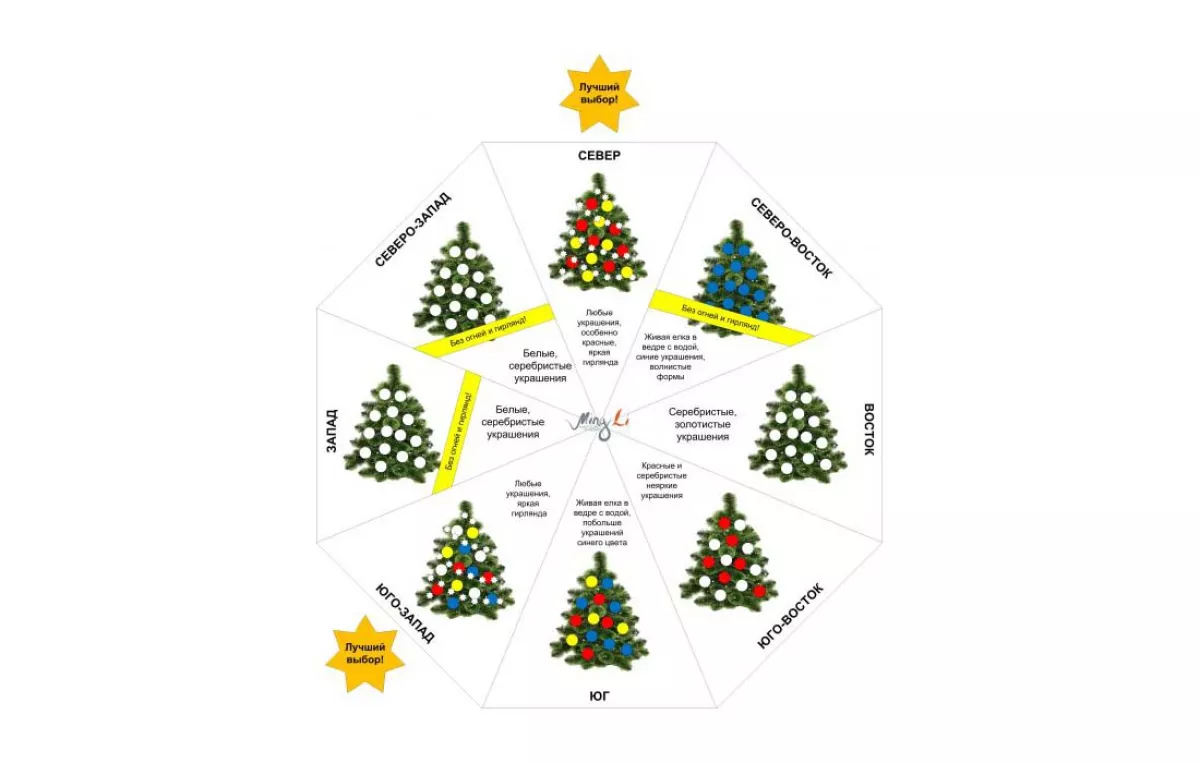 Если вы еще не поставили ёлочку, то рекомендуем вам поставить ее на север или юго-запад квартиры или комнаты. Лучше всего – в северный сектор северной комнаты или в юго-западный сектор юго-западной комнаты. В этих местах ёлочка будет не просто радовать глаз, но и активизировать успех, богатство, отношения и даже долгожданное пополнение в семействе.