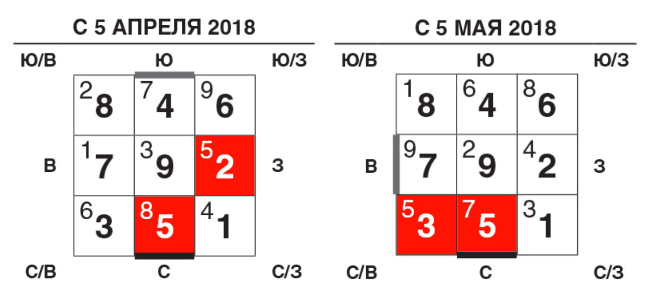 В заключении прикрепляем вам все таблички Летящих звезд для месяцев 2018 – не стоит путешествовать в направление пятерки и обратно.