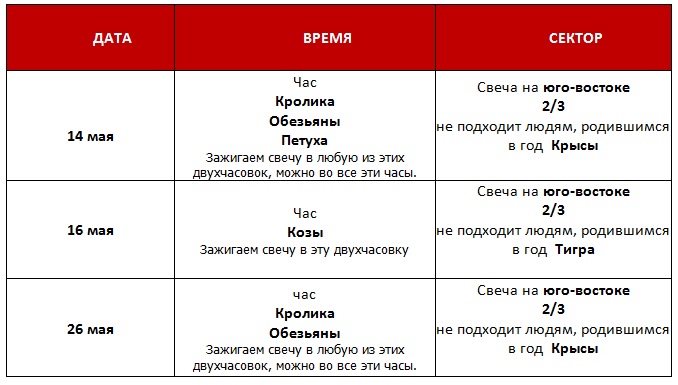 В указанное время и в указанном секторе нужно зажечь свечу. Я беру толстые свечи, которые горят много часов - они устойчивые и не сильно оплавляются. Свеча должна гореть 1,5 часа, но можно оставить и до конца суток (это эффективнее).