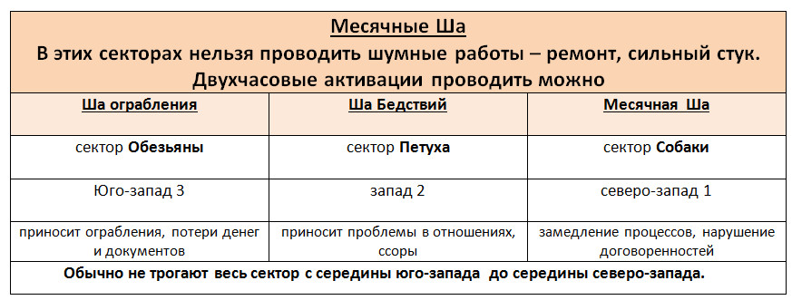 Восток. Удваивается «звезда грабежа», усильте безопасность в этом секторе, не храните здесь деньги. Энергии востока провоцируют сплетни, ссоры, вы просто сами можете не заметить, как скажете что-то, что в последствие приведет к разногласиям, вплоть до расставаний. Внимательно следите за тем, что вы говорите. Мужчины могут соблазниться флиртом на стороне. Берегите горло, легкие, не переохлаждайтесь. Поставьте защиту – сосуд с соленой водой, также эта звезда любит, когда люди занимаются саморазвитием, уделяют внимание духовному аспекту жизни.
