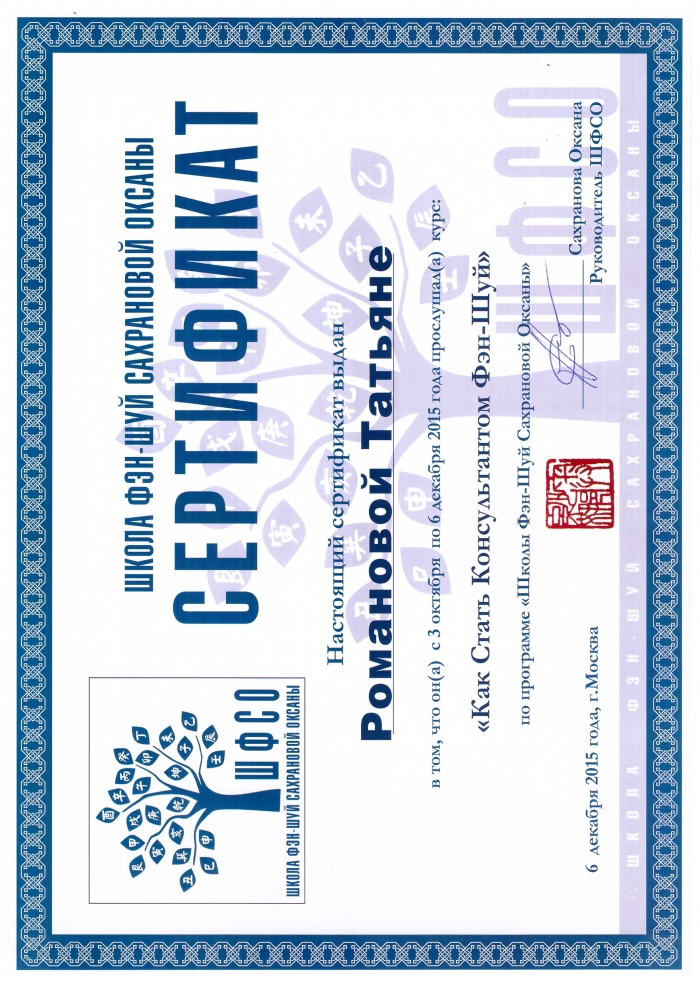 Где консультирую: Фэн шуй: Санкт-Петербург, ближайший пригород, выезд в другие города России и зарубежья по договоренности. По остальным вопросам - дистанционно, любая точка мира, через интернет.