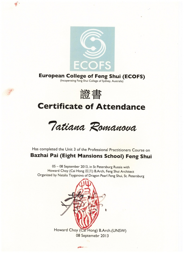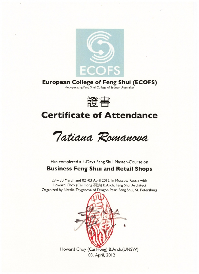 • Говарда Чоя (Германия) - полный курс Фэн-шуй.