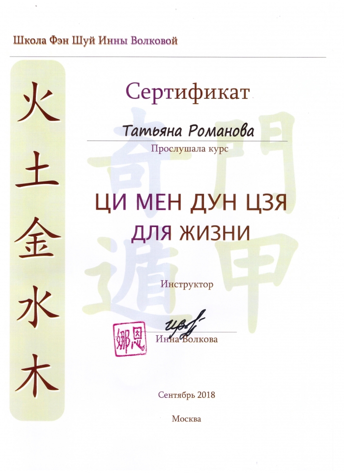 • Натальи Цыгановой (Россия) - полный курс Фэн-шуй, Ци Мэнь Дунь Цзя, БаЦзы