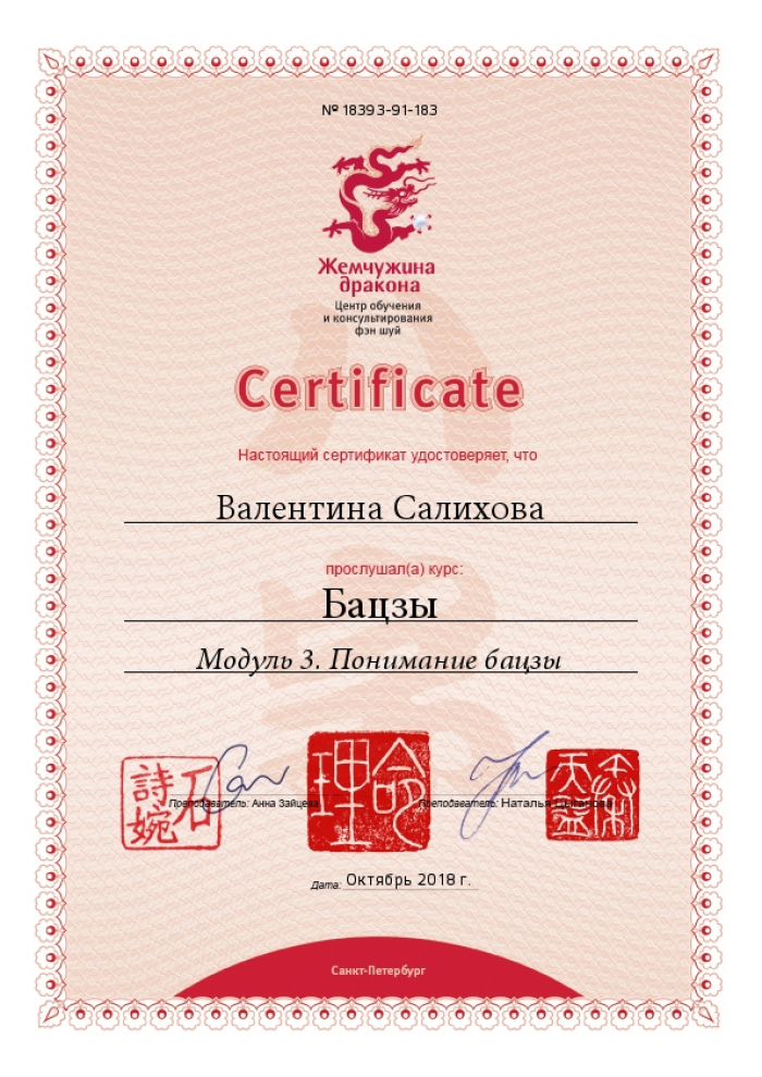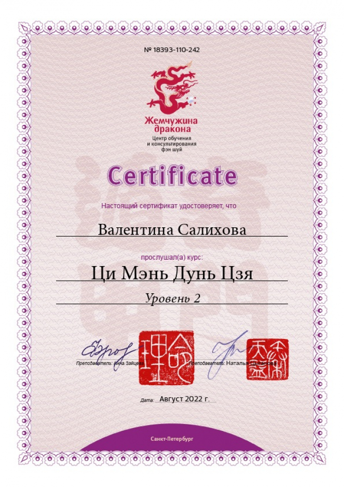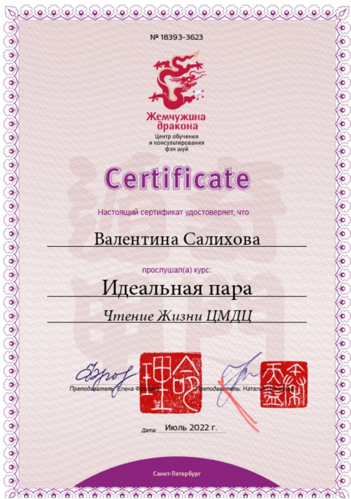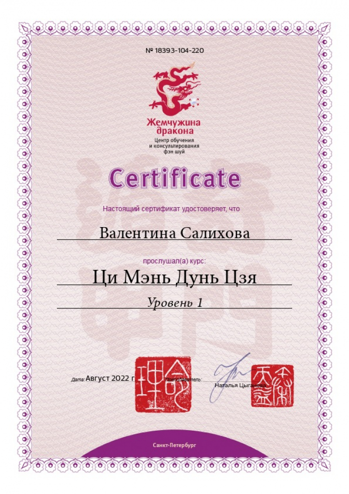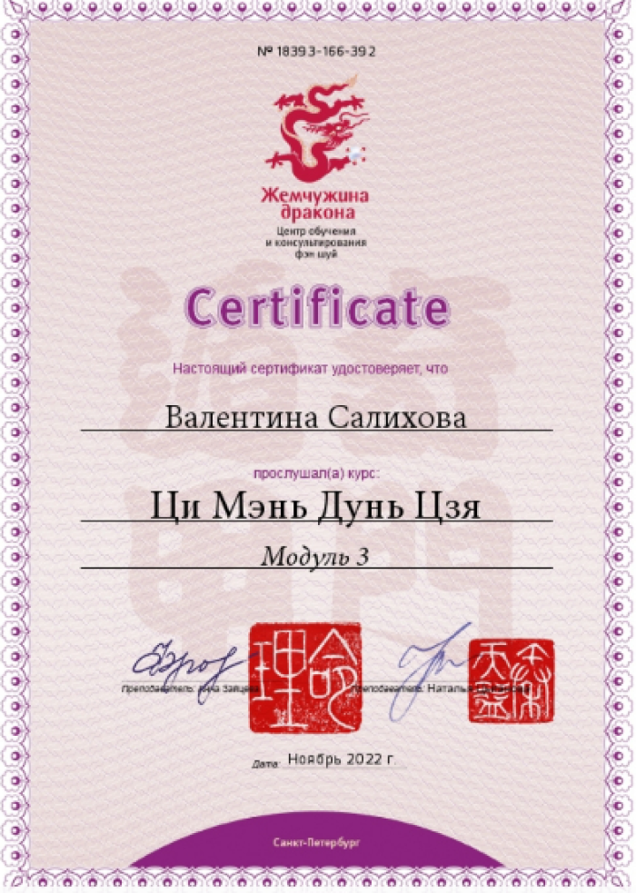 Имею высшее образование по управлению персоналом и сертификацию бизнес-тренера. В последние годы работала директором по персоналу, объединяя все функции в компании по управлению людьми. Китайскую метафизику открыла для себя а 2015 году, а с 2019 года консультирую.